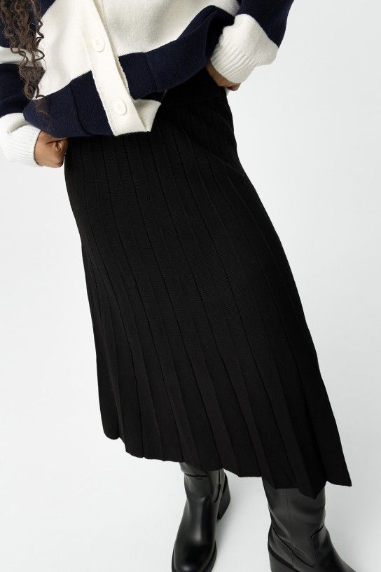 Midi skirt with elastic waist. Pleated fabric with fluid finish.