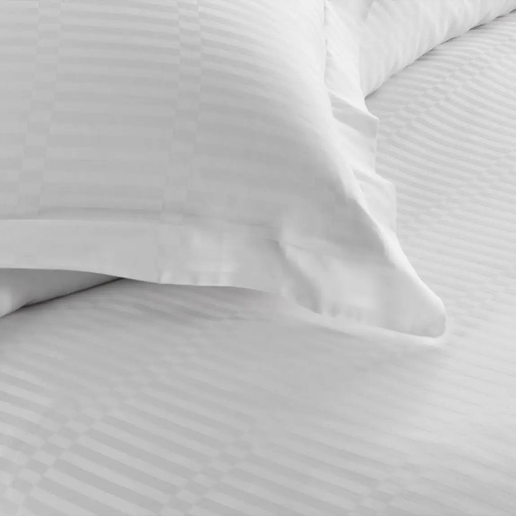 The stripe is broken with a small check at regular intervals, creating a very simple and stylish effect. The 400 thread count, 100% cotton weave is luxuriously soft and welcoming, and the simplicity of the design means the cover will work beautifully in virtually any bedroom.