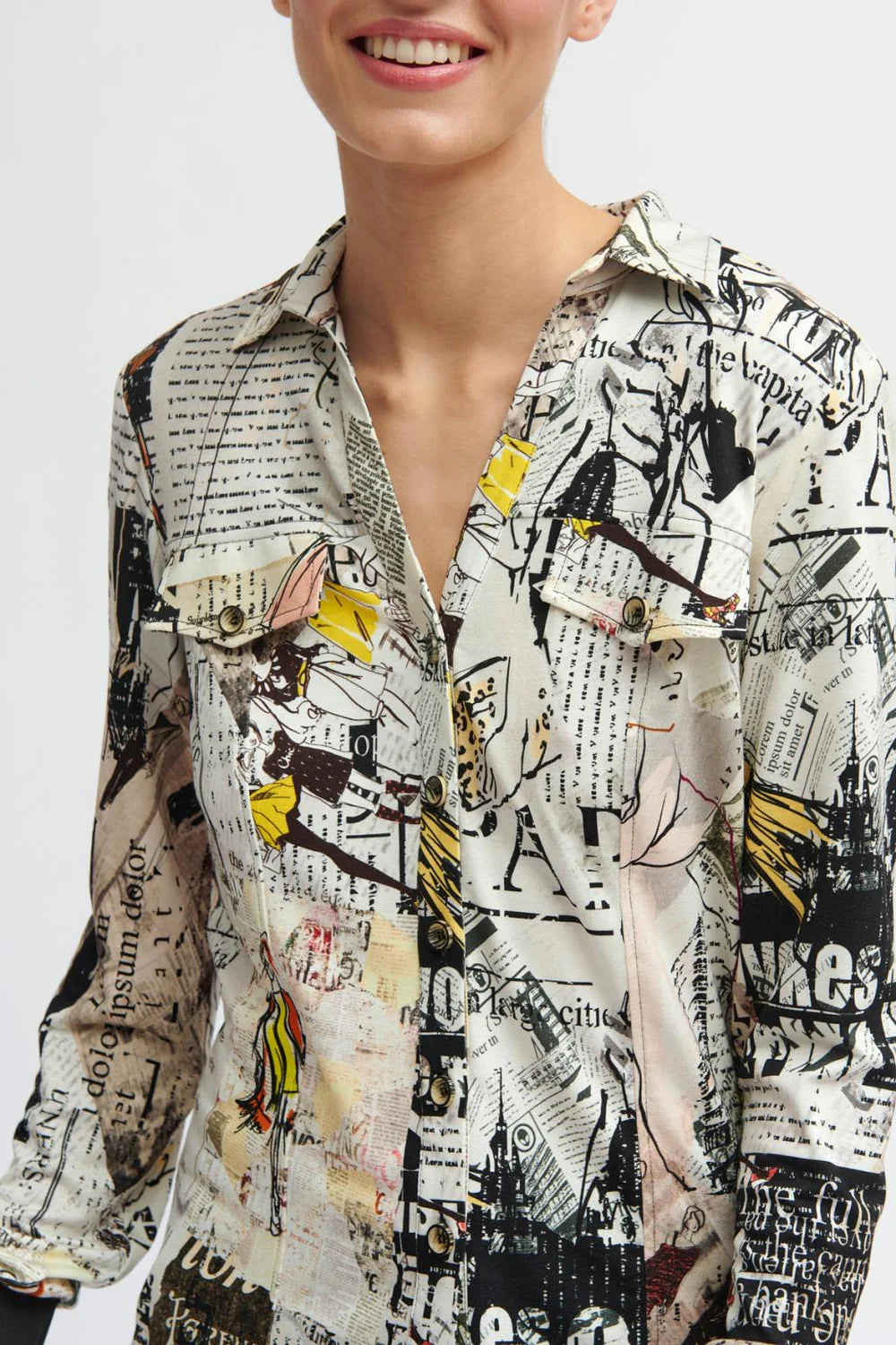 - Front button closure.