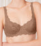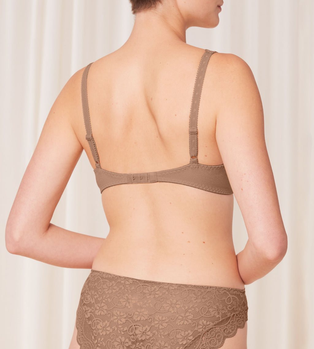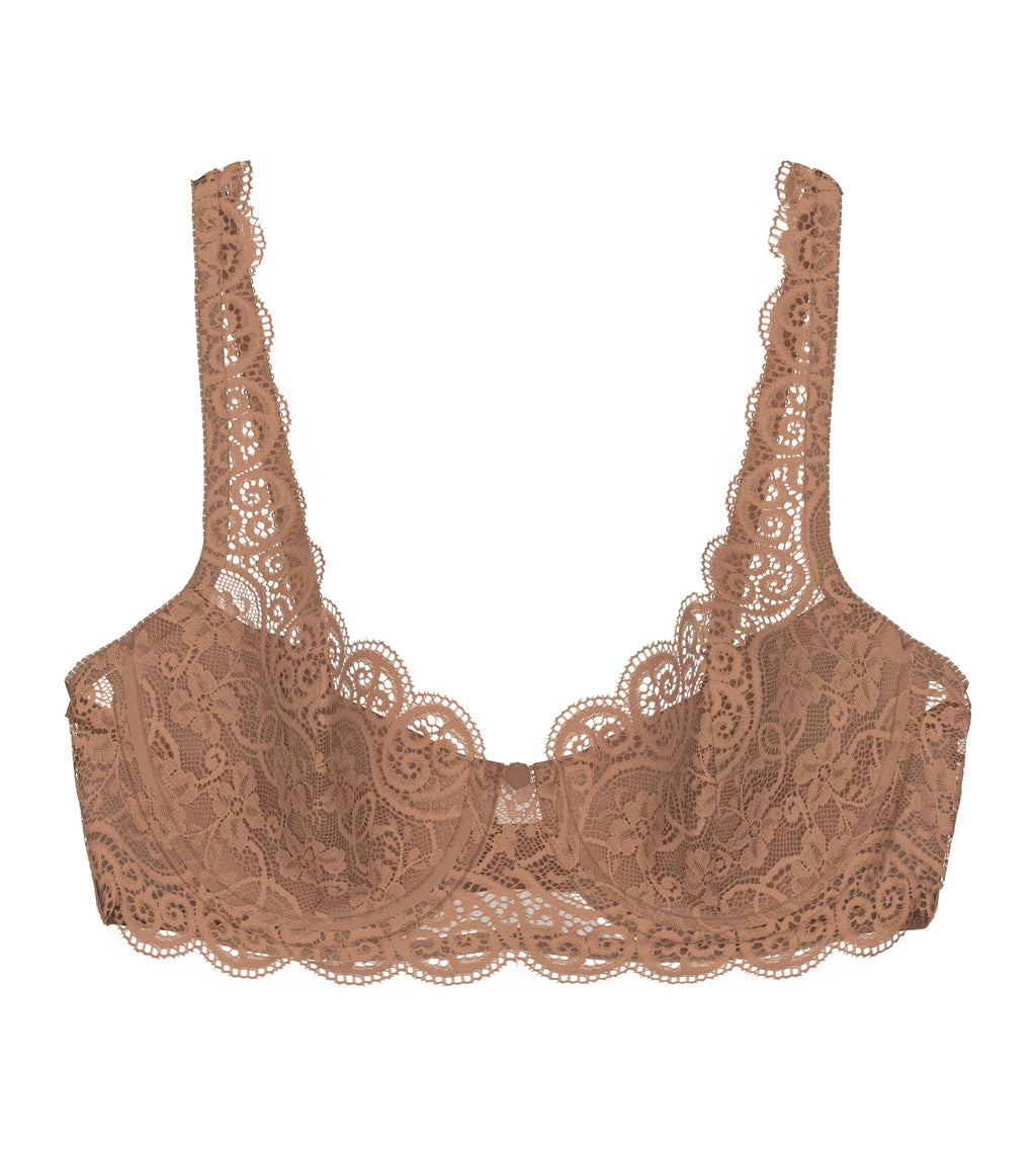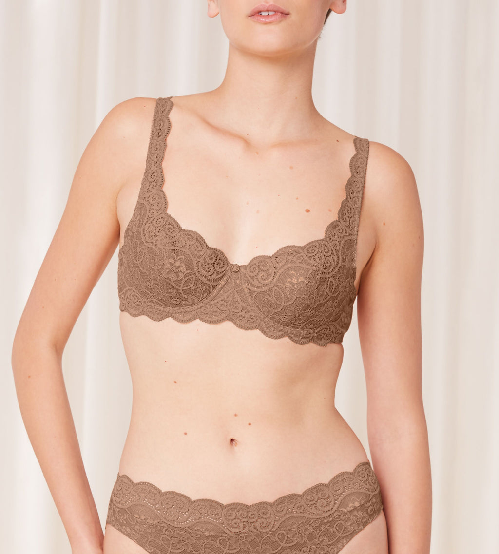 - Soft padded cups in stretchy lace