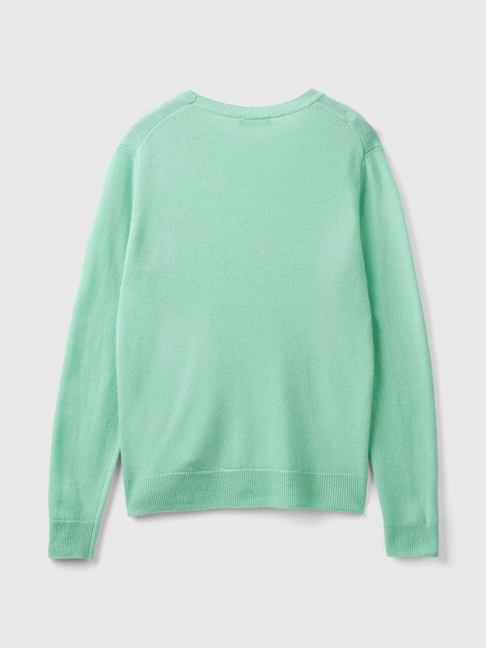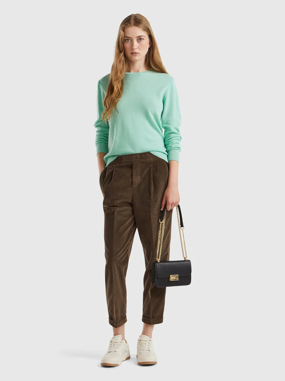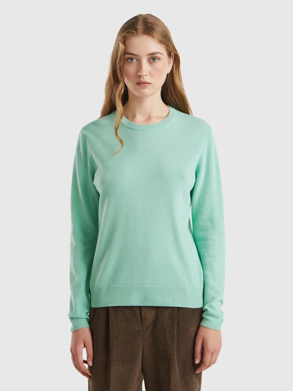 Basic 100Pc Virgin Round Neck Jumper - Aqua