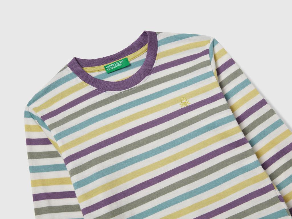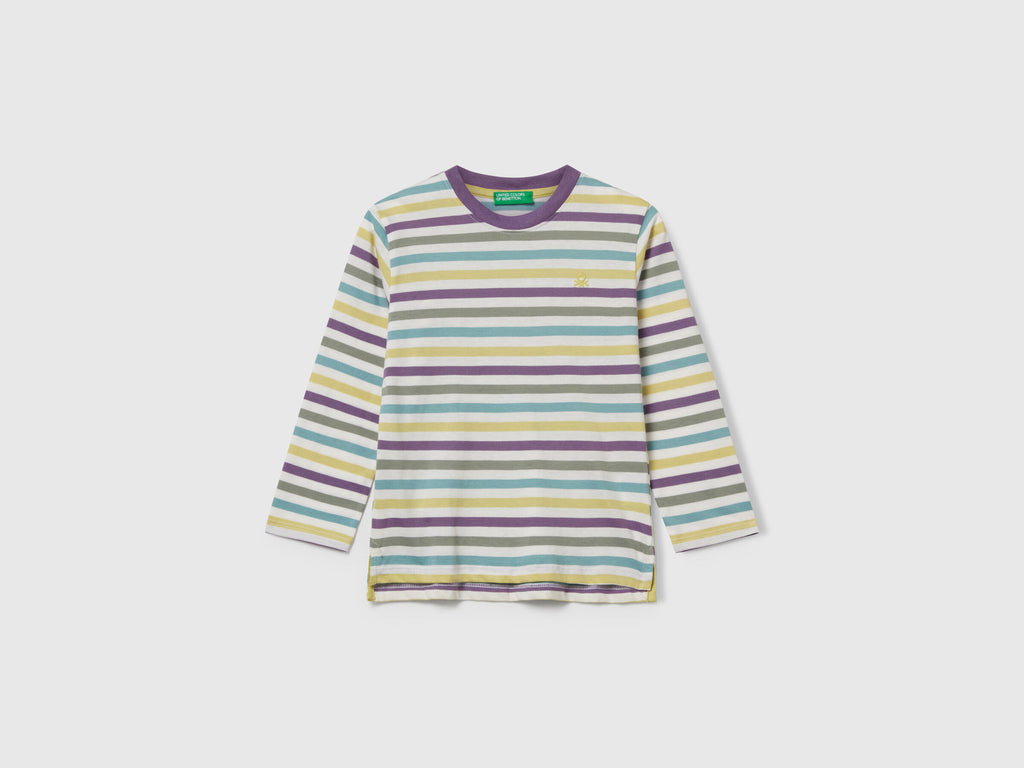 Boys Stripe Long Sleeve T-Shirt - Purple/lime Stripe