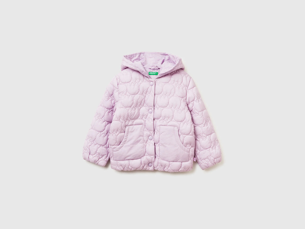 Girls Floral Print Hooded Jacket - Lilac