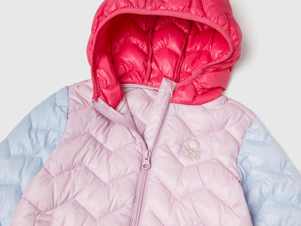 Girls Hooded Puffer Jacket - Pink/blue