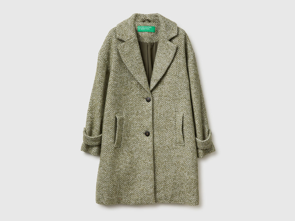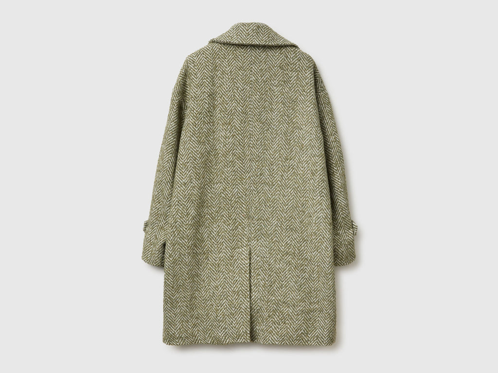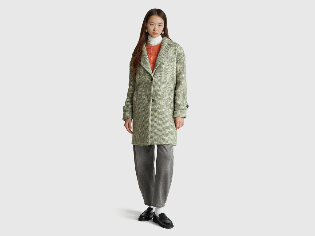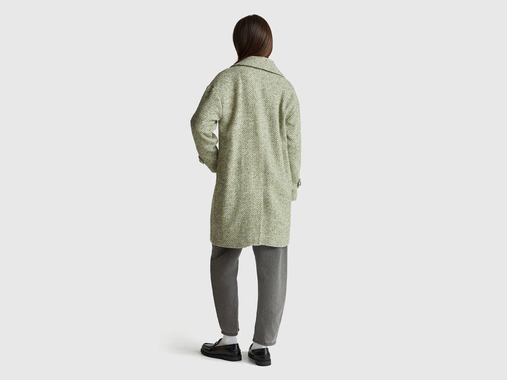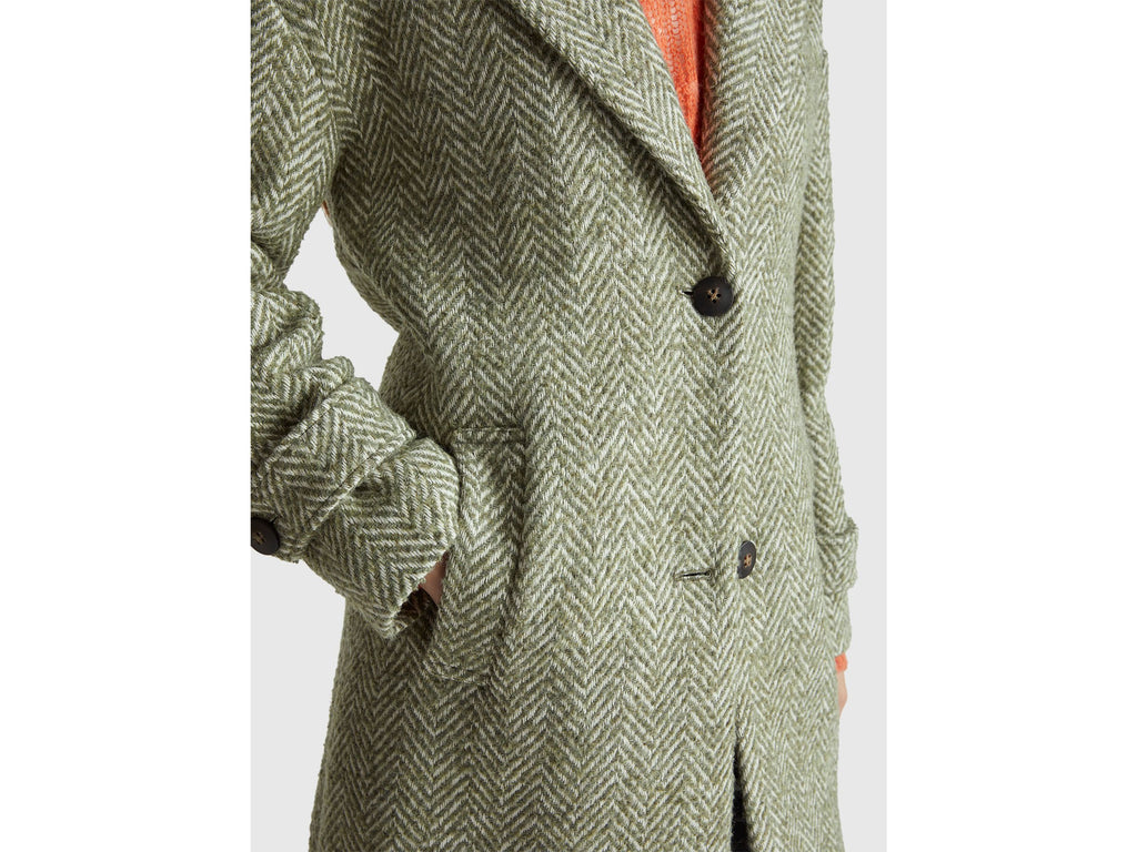 Herringbone Wool Blend Coat - Military Green