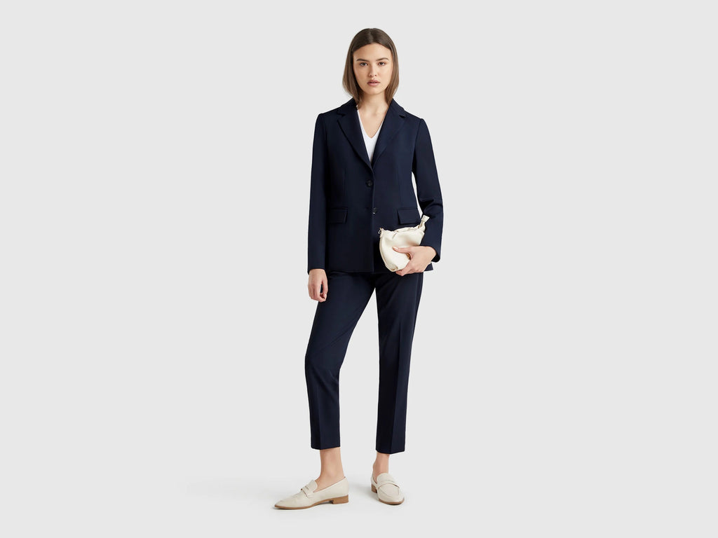 Material: Outside: 66% Polyester, 28% Viscose, 6% Elastane. Lining: 95% Polyester, 5% Elastane.