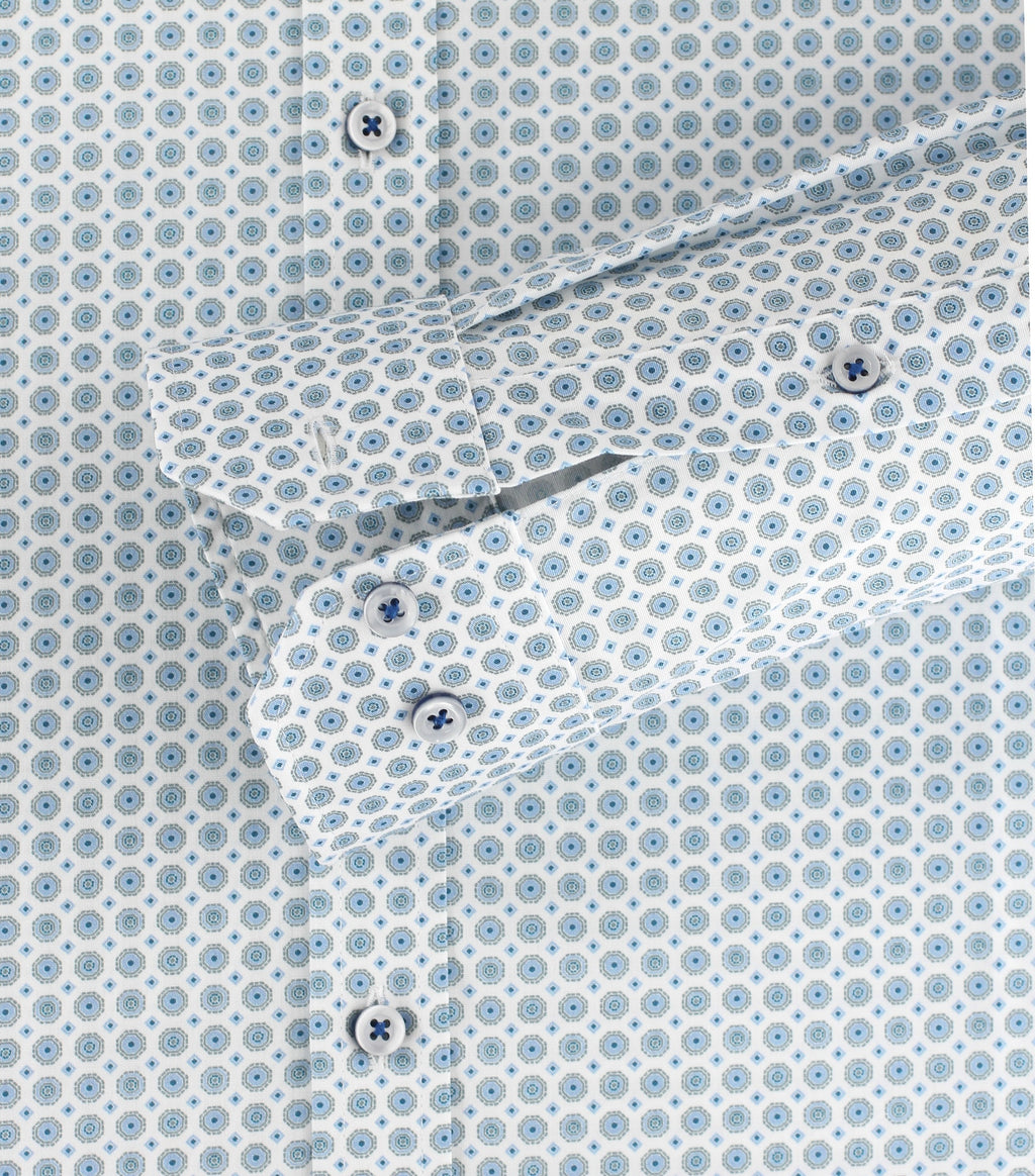 - Full central button fastening.