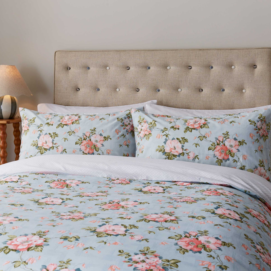 Helena Springfield Fable Wild Rose Duvet Cover Set Duck Egg & Powder Pink